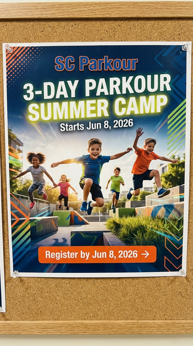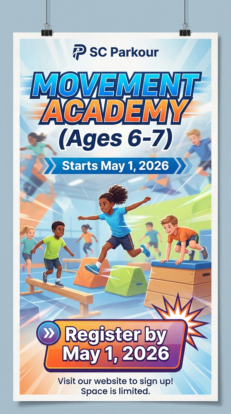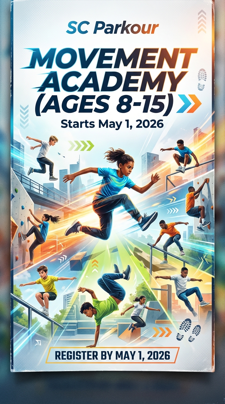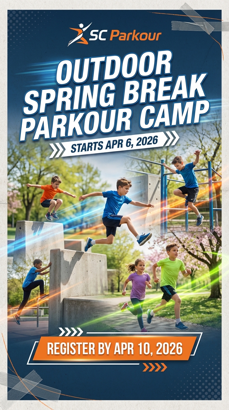 Keep your kids active and adventurous this spring break with SC Parkour’s Outdoor Parkour Camp—where safe coaching meets playful exploration. Our experienced instructors teach progressions in running, jumping, vaulting, and landing in a fun, confidence-building environment designed for all skill levels. Bring water, sunscreen, and a sense of curiosity—by week’s end kids leave stronger, more coordinated, and proud of what they can do.